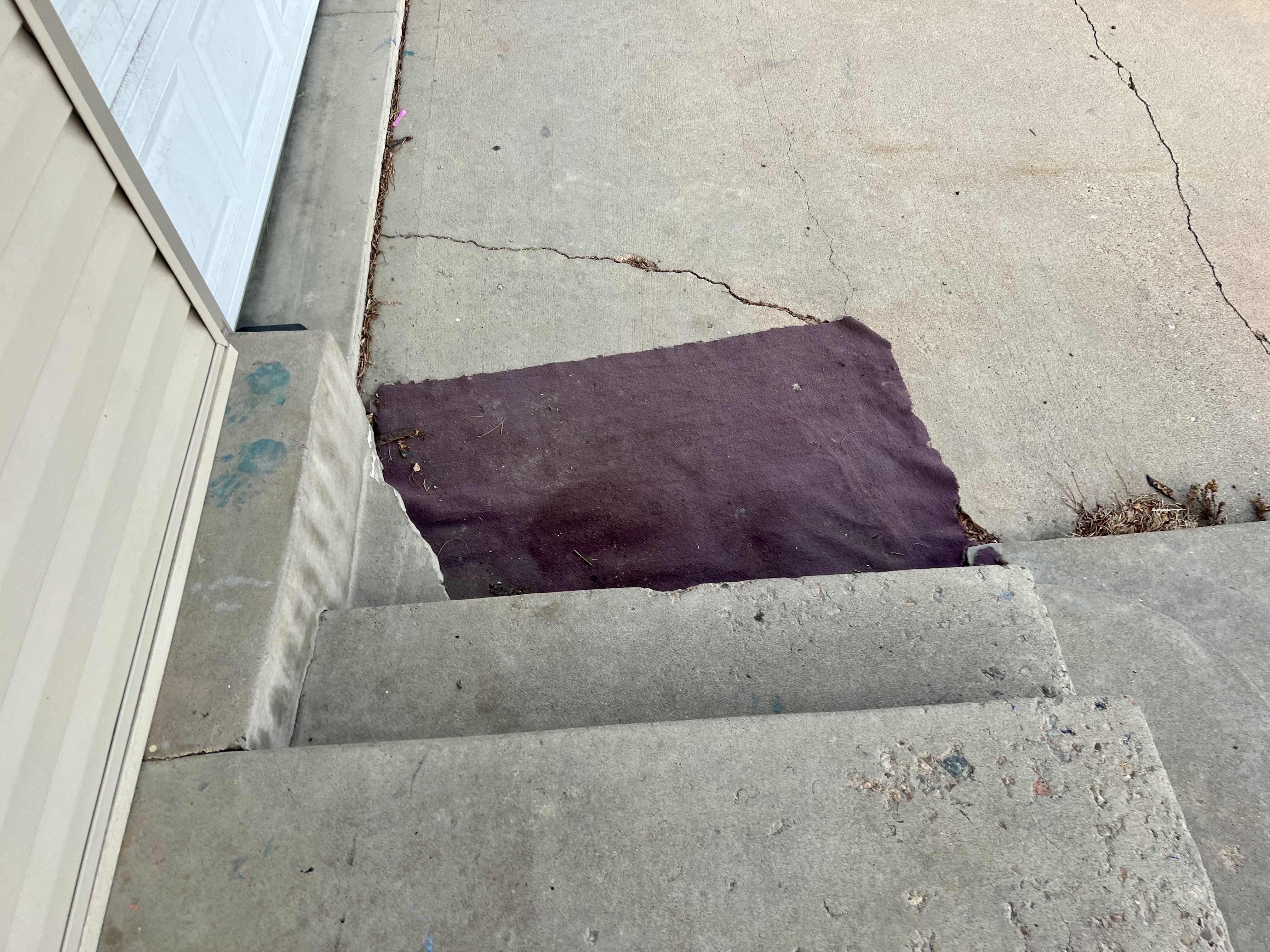 Faces south with a 1 car garage garage and extra driveway that could be used to drive cars into the back yard.